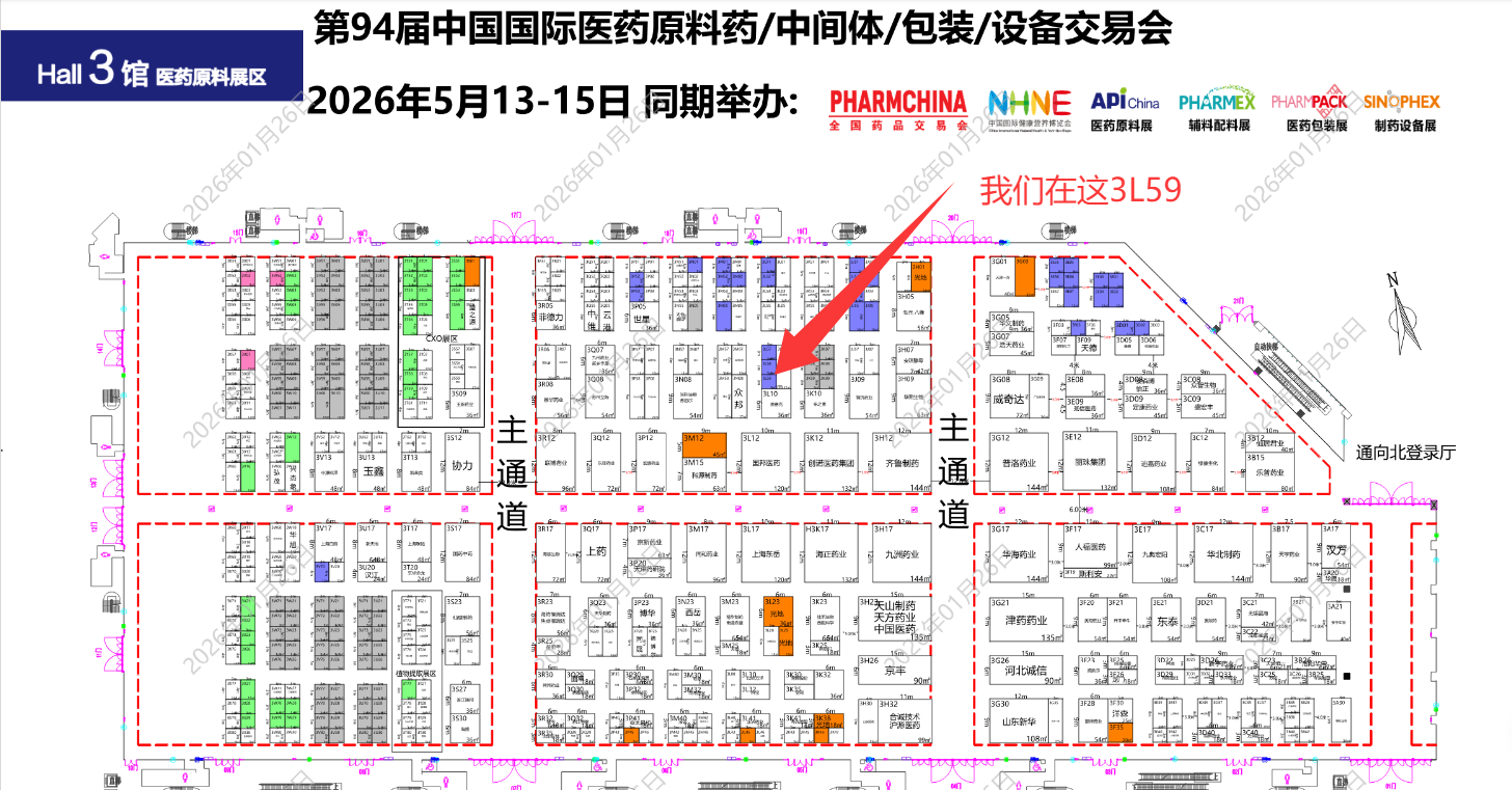 第94届中国国际医药原料药/中间体/包装/设备交易会,地点:国家会展中心(上海),时间:2026年5月13日-15日),公司展位号3L59,欢迎前来洽谈!